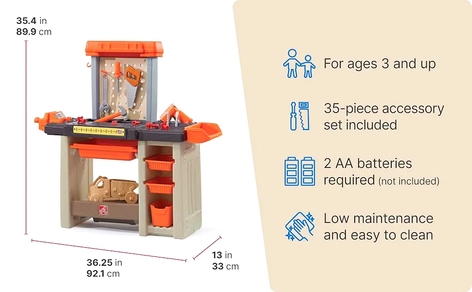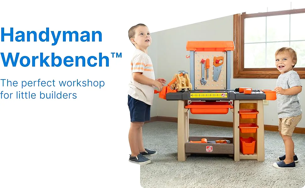 โต๊ะช่าง Handyman จาก Step2 เป็นเวิร์คช็อปที่สมบูรณ์แบบสำหรับเด็กชายหรือเด็กหญิงตัวน้อยที่ชอบงานช่าง! ช่วยพัฒนาทักษต่างๆ เมื่อเด็กๆ เล่นกับสว่าน เลื่อย และค้อน แถมยังช่วยให้จินตนาการของพวกเขายุ่งอยู่ได้นานหลายชั่วโมง! ผลิตในประเทศสหรัฐอเมริกา